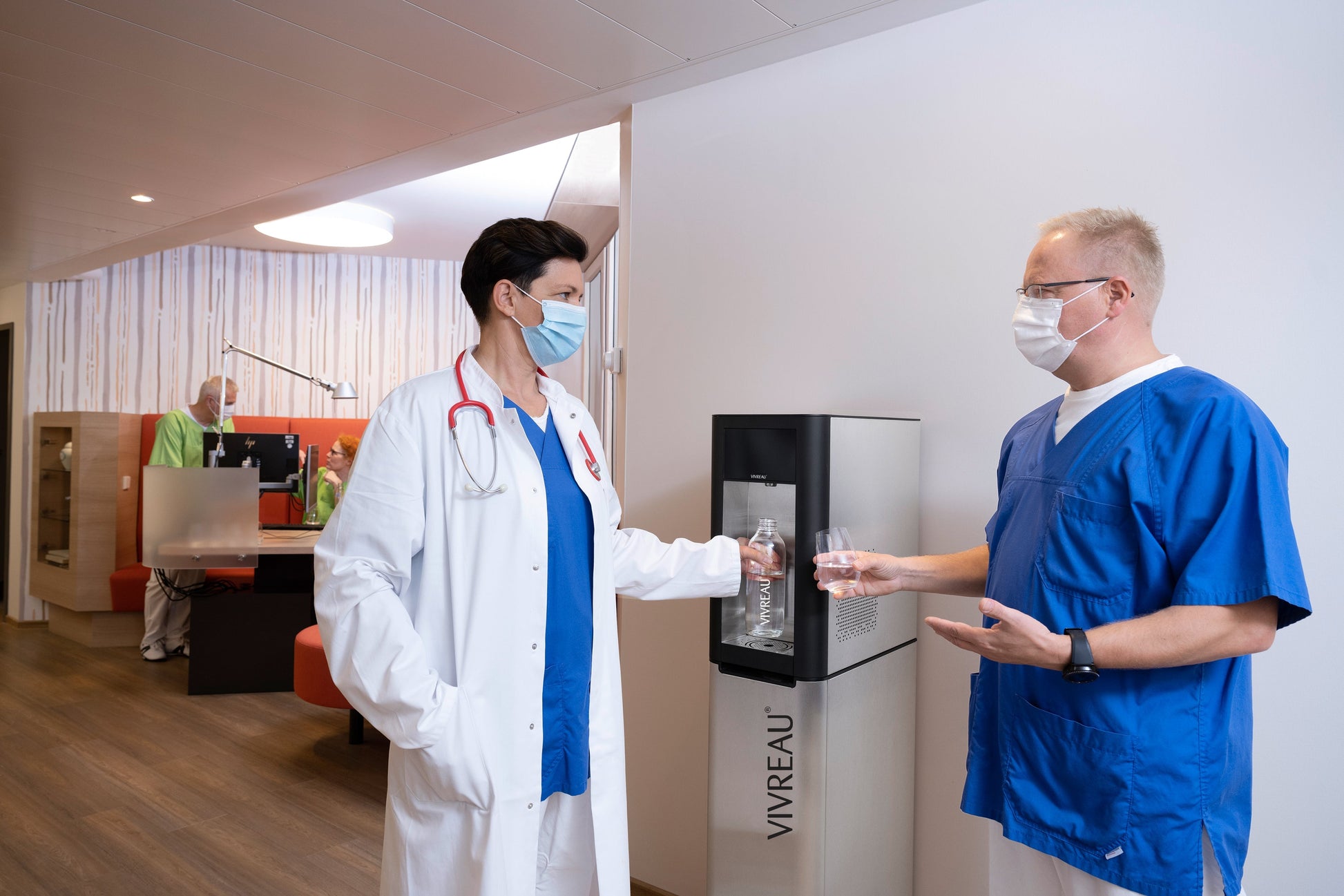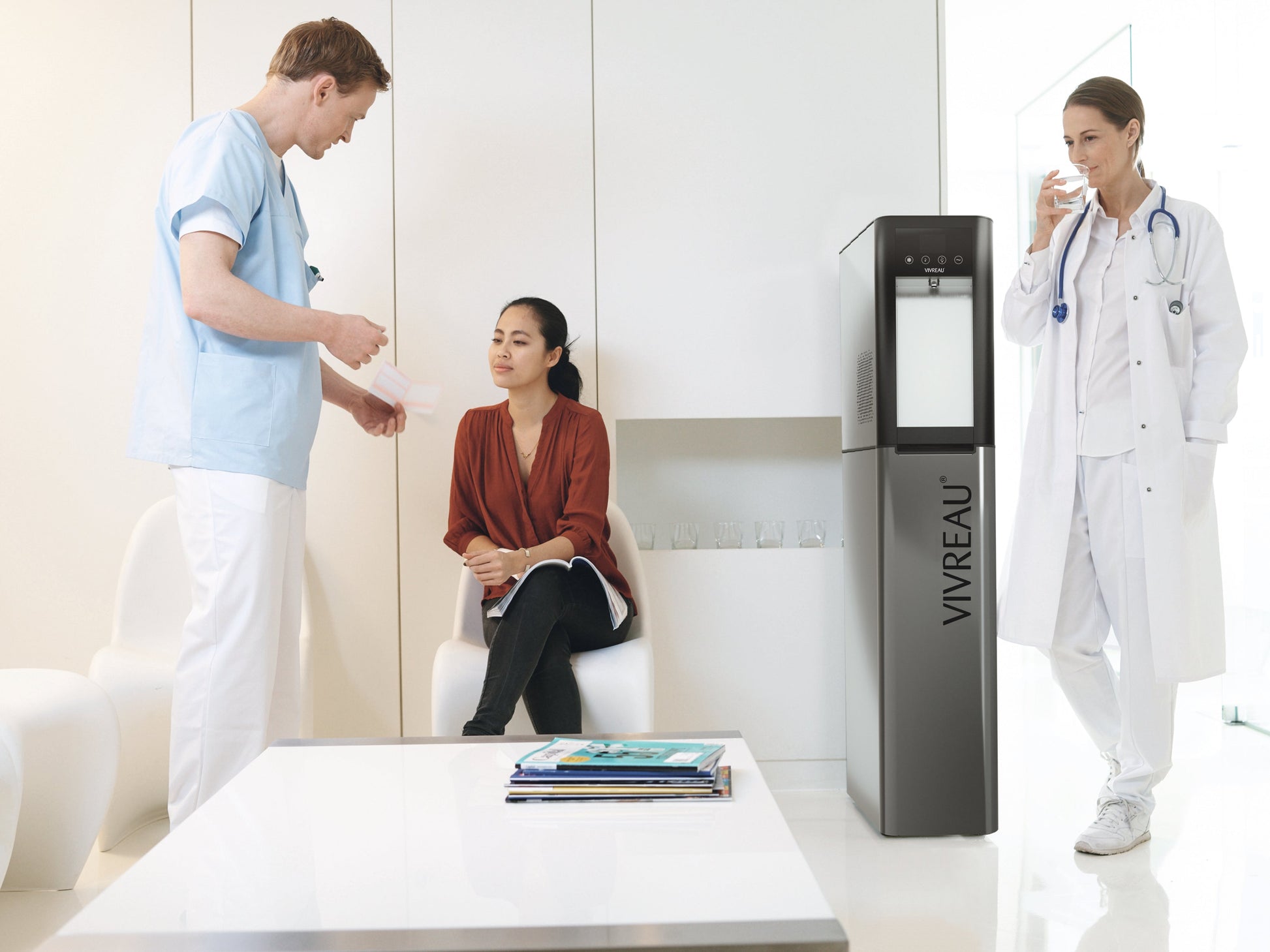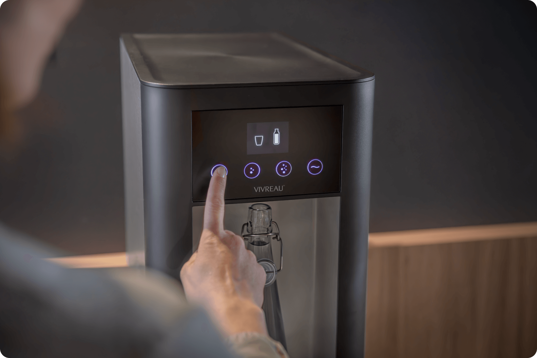 - Vivreau’s ThermalGate™ feature protects against retrograde contamination from external sources: Without a robust safeguard, microorganisms on the wet tap can go on to contaminate the dispenser. ThermalGate™ technology automatically and regularly heats the tap to disinfect it. So you can sit back and relax – knowing you have a proactive, powerful defence against germs,
